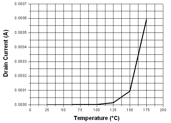 值得注意的是,BVDSS和IDSS都正温度系数参数,尤其是IDSS。如图8,在125℃以内,IDSS一般都在1uA以下,超过125℃后,呈明显的线性增加,约每摄氏度增大12uA。